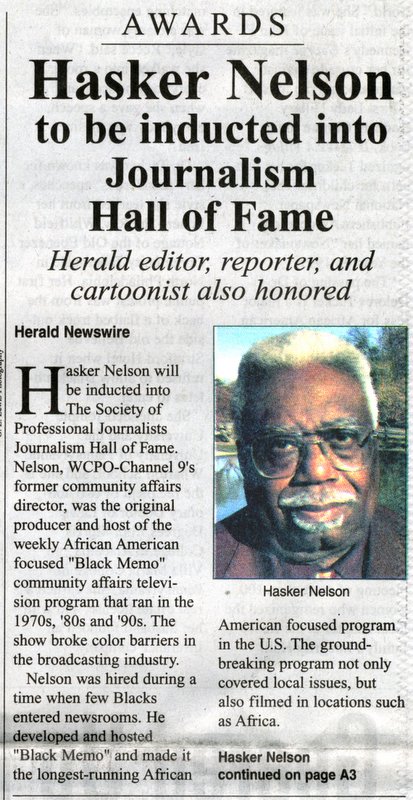 Hasker Nelson, WCPO's community affairs director and the producer-host of the weekly African-American focused "Black Memo" community affairs program in the 1970s, 80s and 90s, broke color barriers in the broadcasting industry. Hired during a time when few blacks entered newsrooms, Nelson developed and hosted "Black Memo" and made it the longest-running African-American focused program in the U.S.