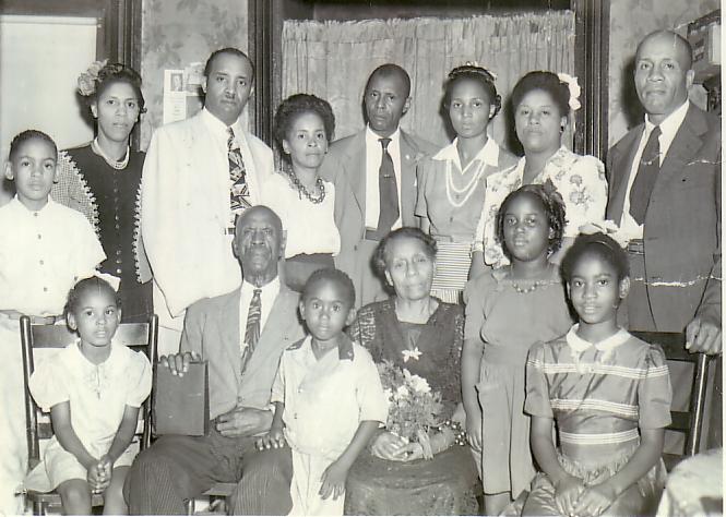 Pictured are Rev. Franklin & Frances (Danner) Howard, who were originally from Como, MS, and their children, Travis Howard, Fred D. Howard, Rev. Ernest F. Howard, Maryland Barton, Sicely Ivory, Eddie Beatrice Howard, and their grandchildren. Travis Howard founded the town of Howardville, Missouri, located just west of New Madrid, Missouri. Travis's son, Elston Howard, was a catcher for the New York Yankees in the 1950's. |